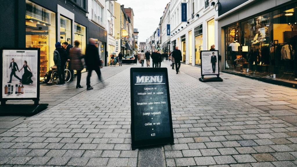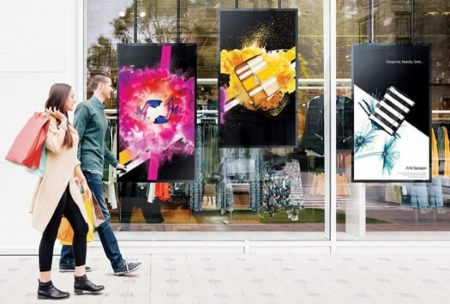 clients entrent dans un magasin grâce à l'affichage dynamique.